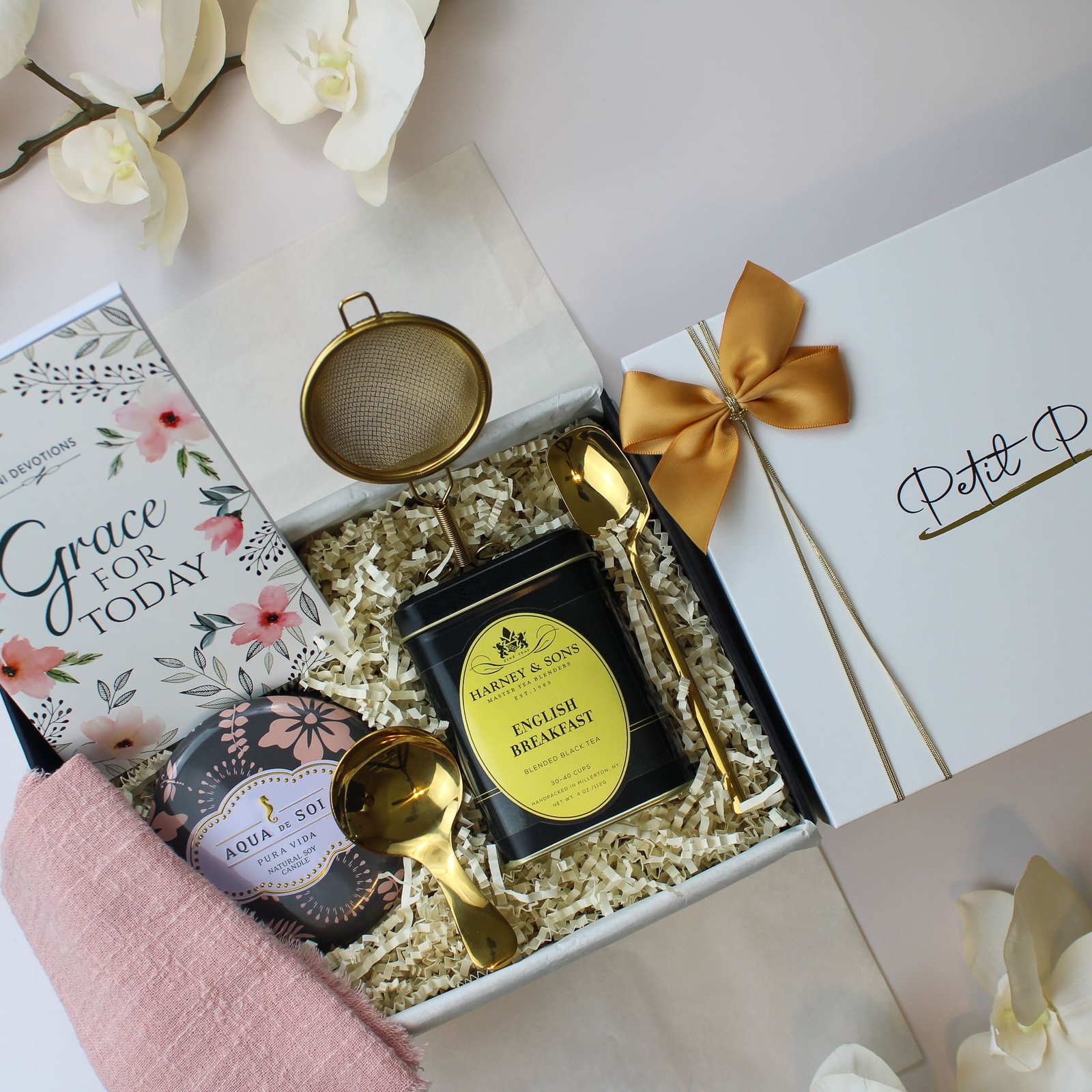 - English Breakfast Tea Tin: A premium tin of rich and flavorful English Breakfast tea by Harney & Sons, perfect for a comforting tea moment.