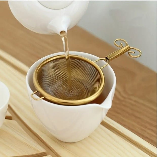 - Tea Strainer: A gold tea strainer for an elevated tea experience.
